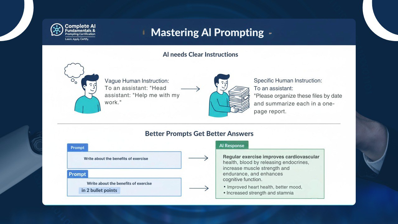 Go beyond just “using” AI — learn how to communicate with it. You’ll discover how to write clear, effective prompts that get better results.