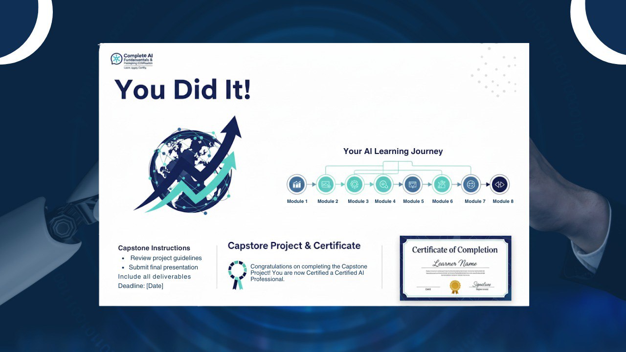 Earn a verified certificate to showcase your new AI skills and strengthen your professional credibility.